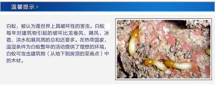 廣東護建白蟻防治所有限公司于2014年成立創立。是廣東省白蟻學會會員單位;佛山市白蟻防治行業協會理事單位;佛山市南海區有害生物防制行業協會理事單位;廣東省有害生物防制協會會員單位;本司各類證照資質齊全是專業正規的白蟻防治及有害生物防制單位;獲主管部門頒發白蟻防治資質A級;有害生物防制資質B級......